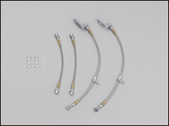 - 一般的なステンレスメッシュブレーキホースが直径0.3mmのステンレス鋼線で外装ブレードを形成している事に対し、ミクロメッシュ・ブレーキラインは、極細の鋼線を7本撚り合わせて直径0.21mmの鋼線を作り、さらに、それを撚り合わせて外装ブレードを形成させる事で、柔軟性と疲労耐久性を大幅に向上。またフィッティング部分には、標準装備品と同じカシメを採用する事で、抜けや液漏れのトラブルを排除。FMVSS(米国連邦自動車安産基準)No.106に適合。1台分4本セット。※参考取付工数:1.1h